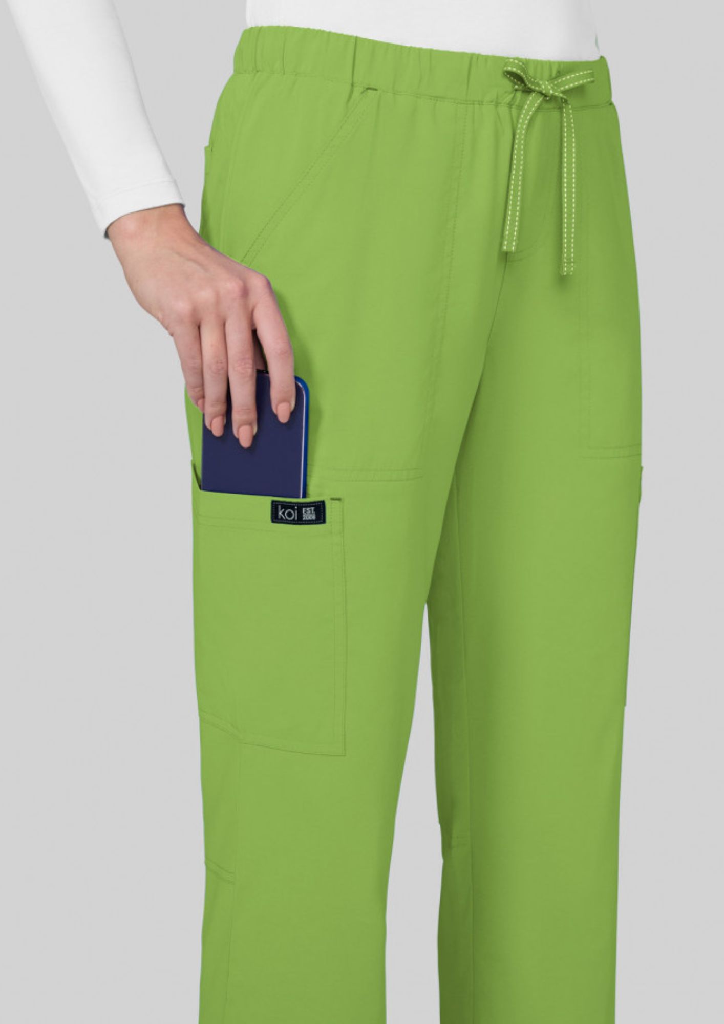 Pantalones médicos para mujeres con cintura elástica y cordón de la colección "Koi basics".