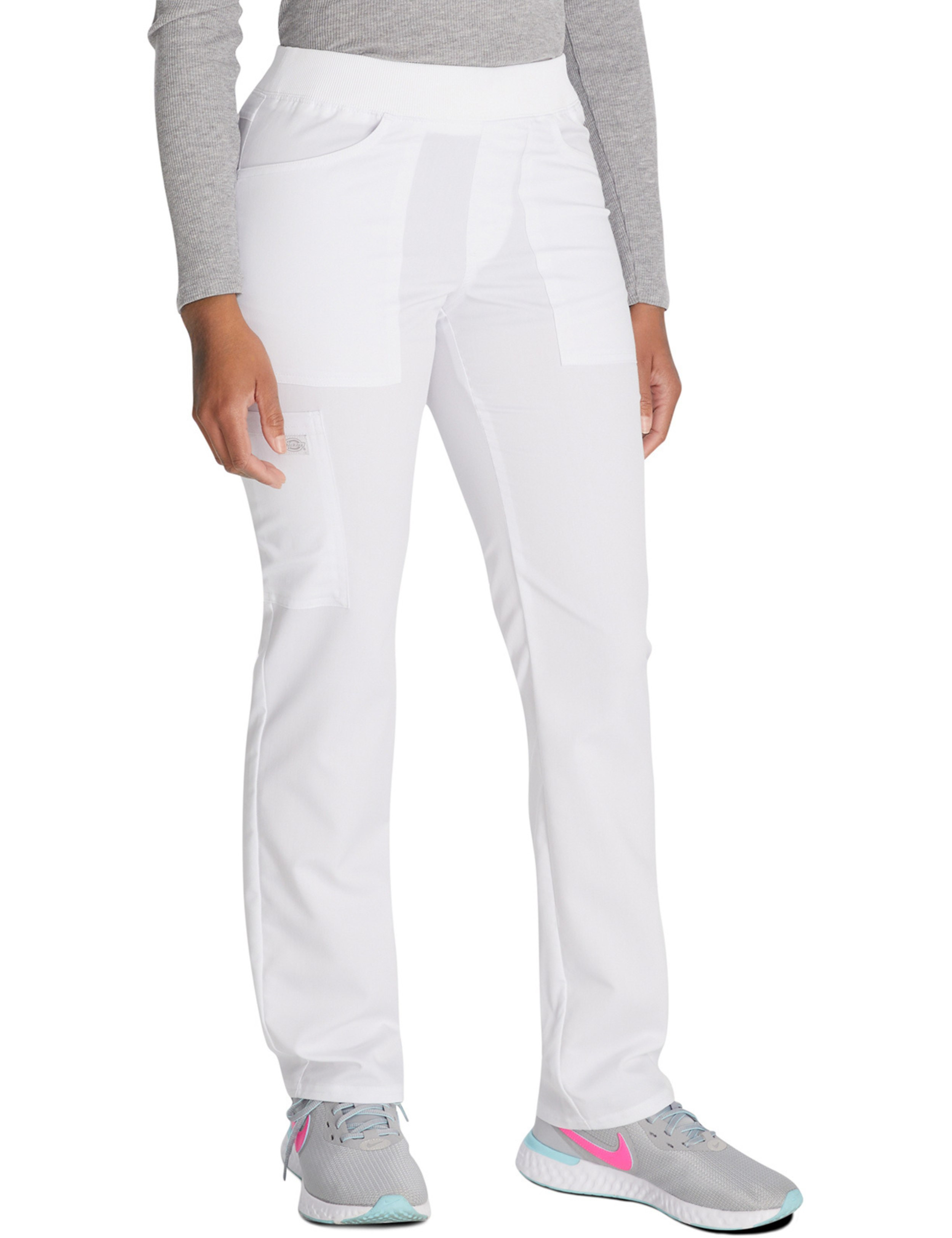 Estos pantalones médicos para mujer de corte entallado y múltiples detalles de la marca "Dickies" son adecuados para todas las profesiones médicas.
