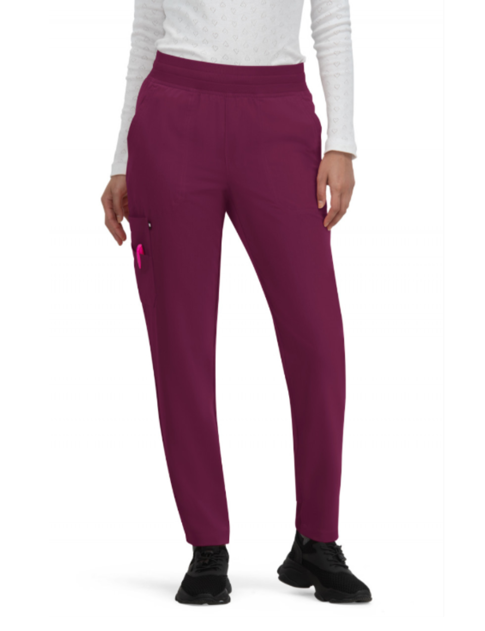 Los pantalones médicos de "KOI", con su corte jogger en la parte trasera de la pierna y sus múltiples detalles, son adecuados para todas las profesiones médicas.