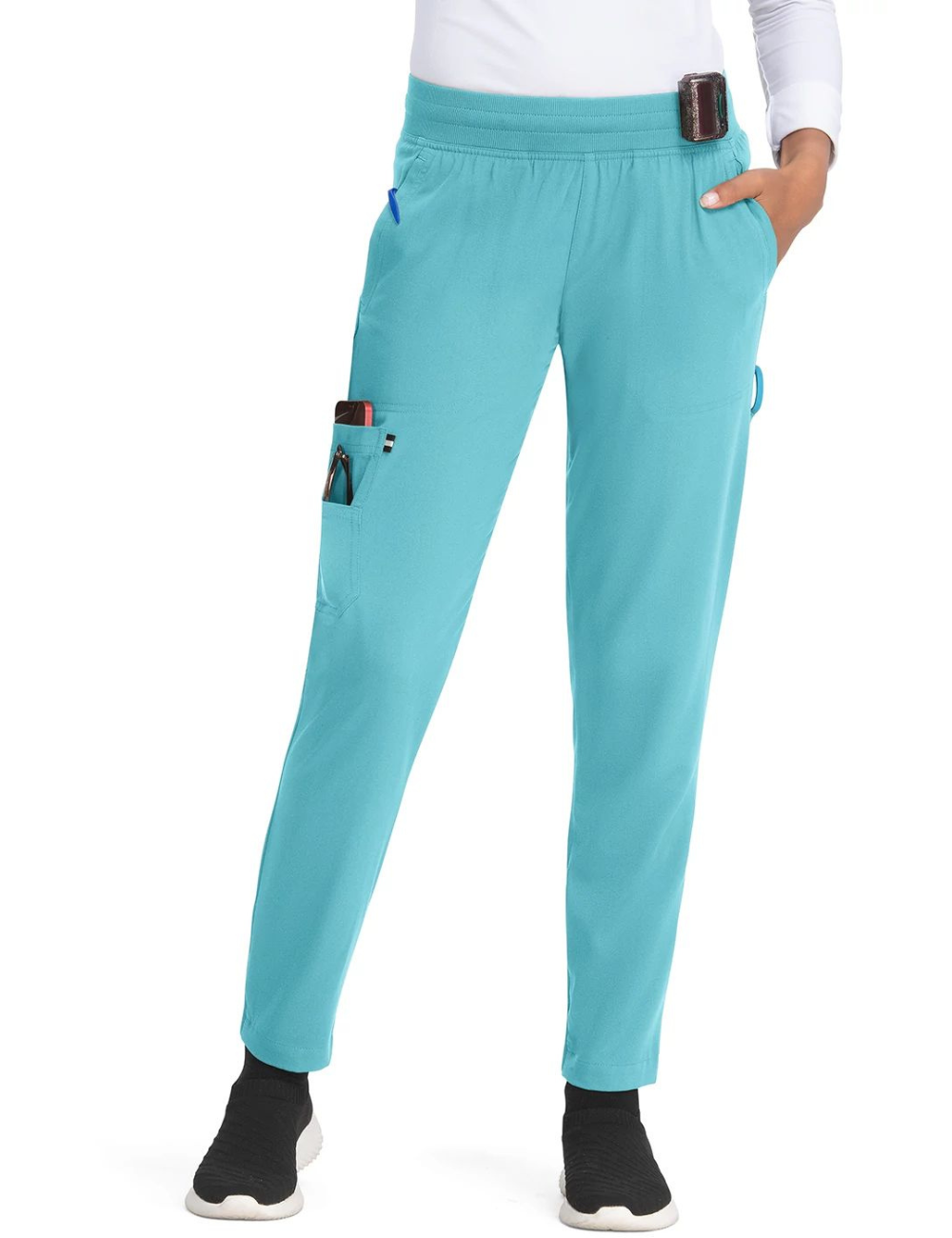 Los pantalones médicos de "KOI", con su corte jogger en la parte trasera de la pierna y sus múltiples detalles, son adecuados para todas las profesiones médicas.
