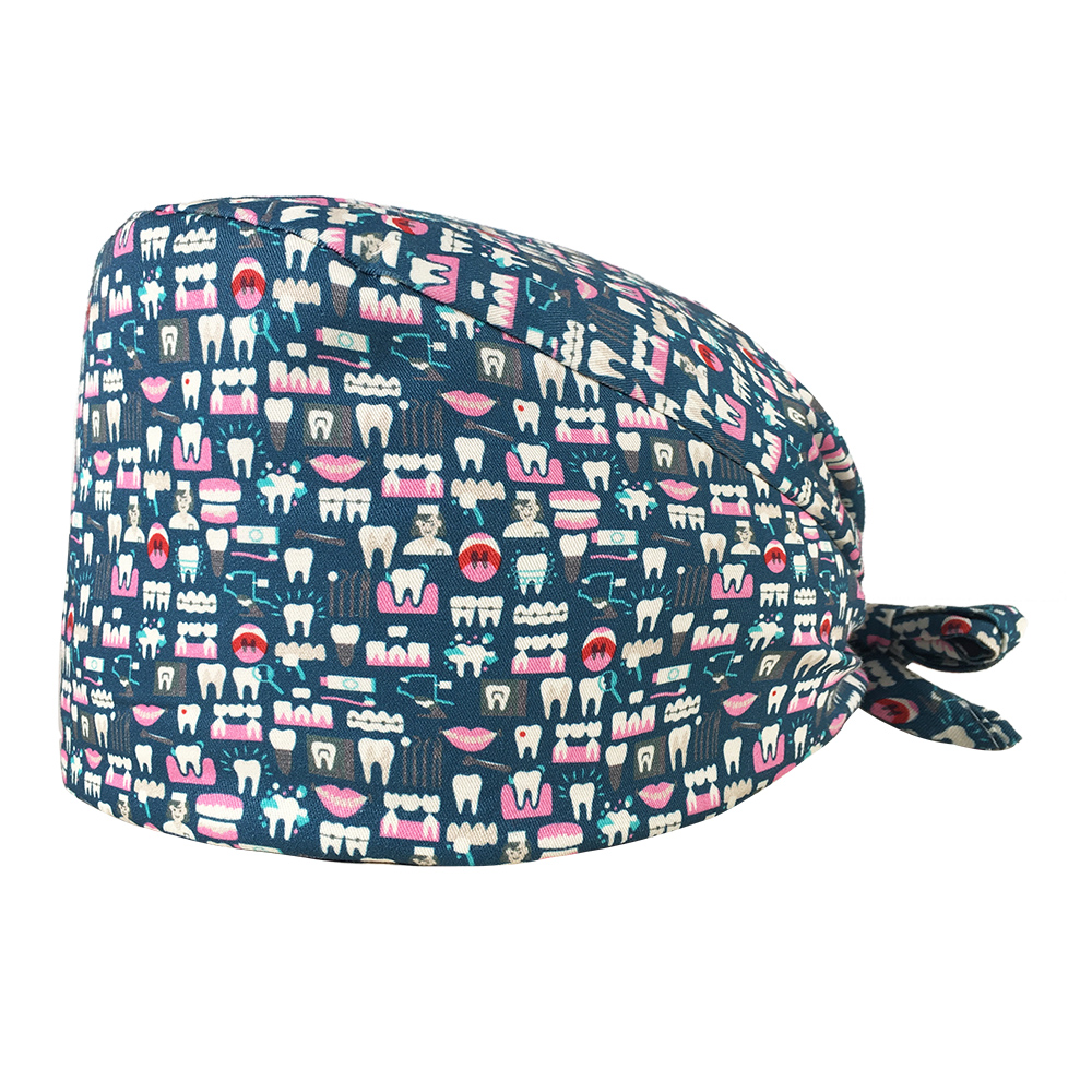 Gorra médica con diseño de dientes sobre fondo turquesa