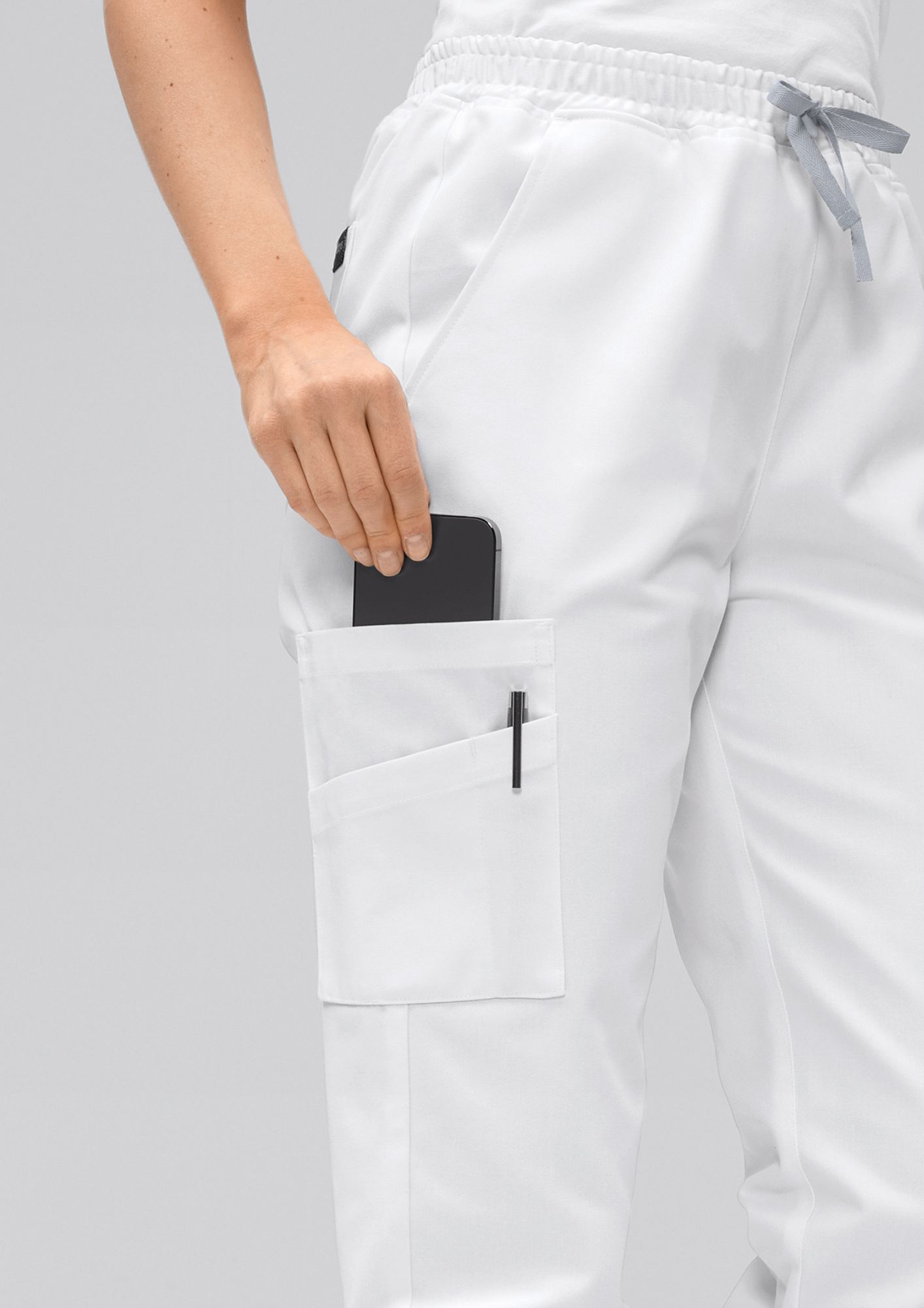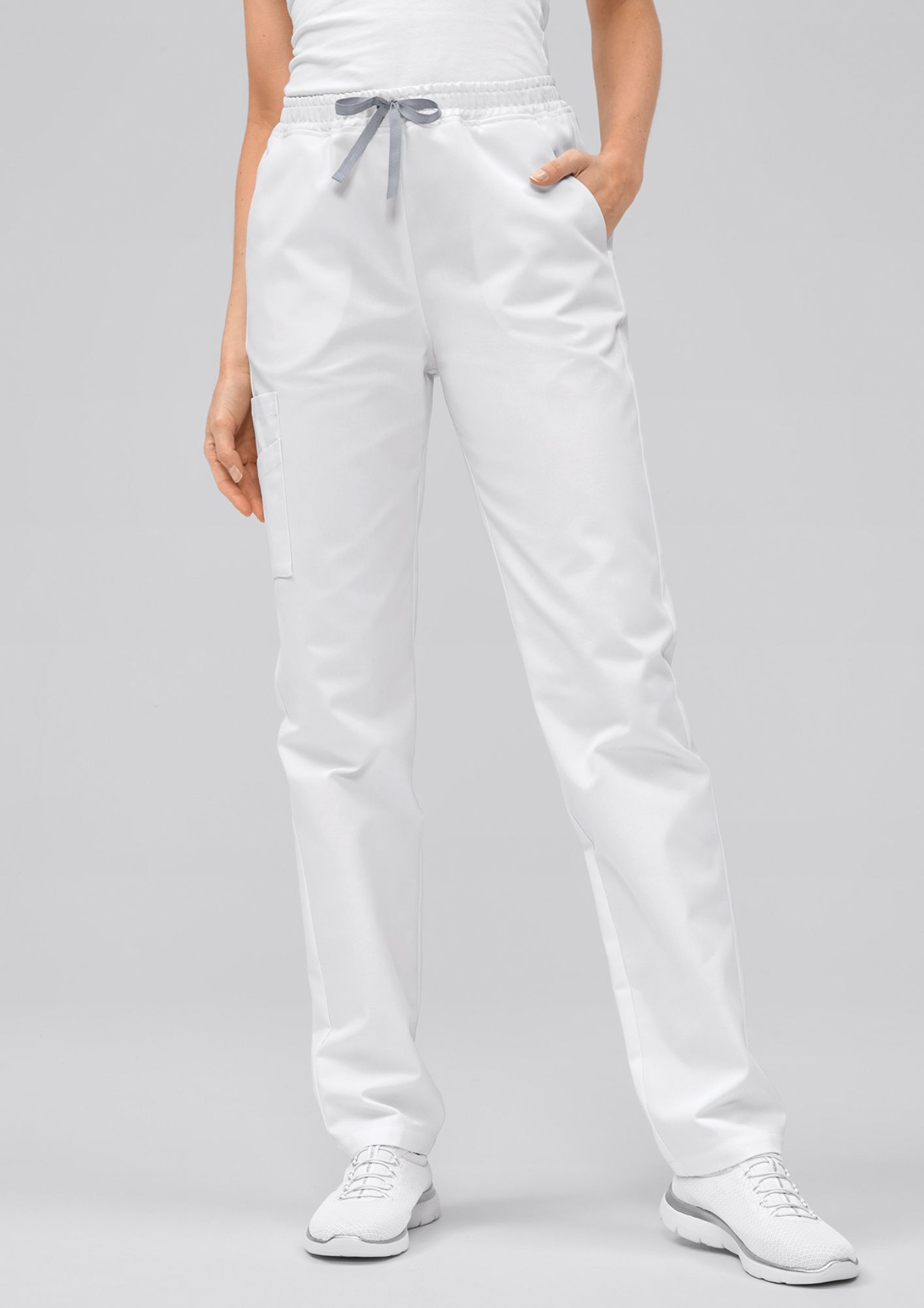Adoptez le pantalon médical mixte MILANO alliant confort et fonctionnalité : sa coupe large, sa ceinture en tricot élastique avec cordons de serrage et ses 6 poches pratiques offrent liberté de mouvement, rangement optimisé et style professionnel pour briller tout au long de votre journée.