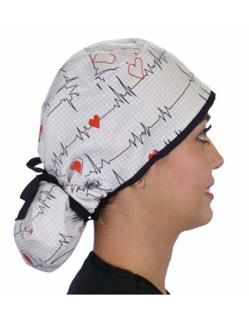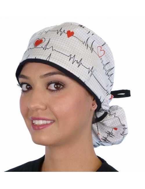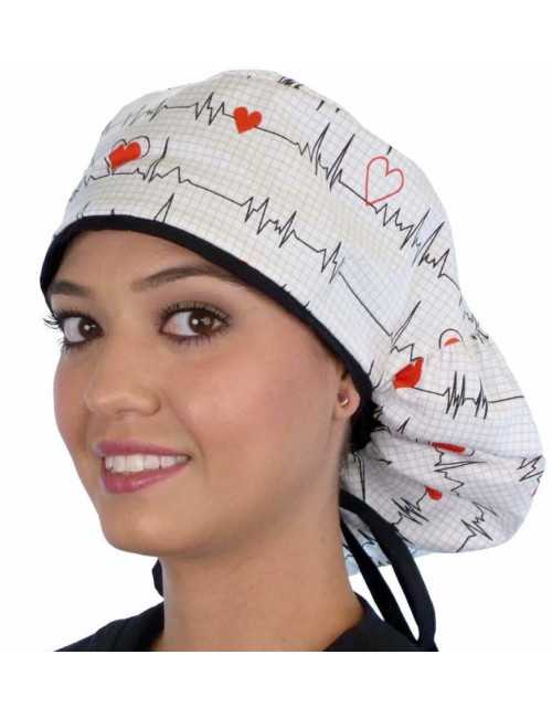 Calot Médical Cheveux Longs Motifs Battements coeur