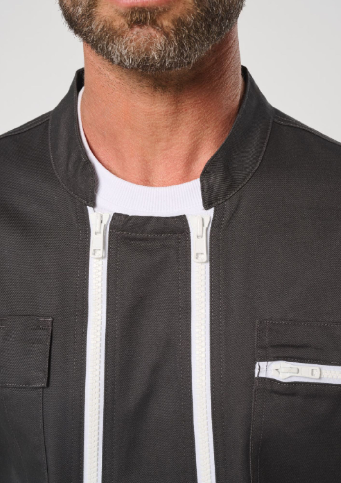 • Fermeture double zip en plastique avec têtes de zips en métal blanc.