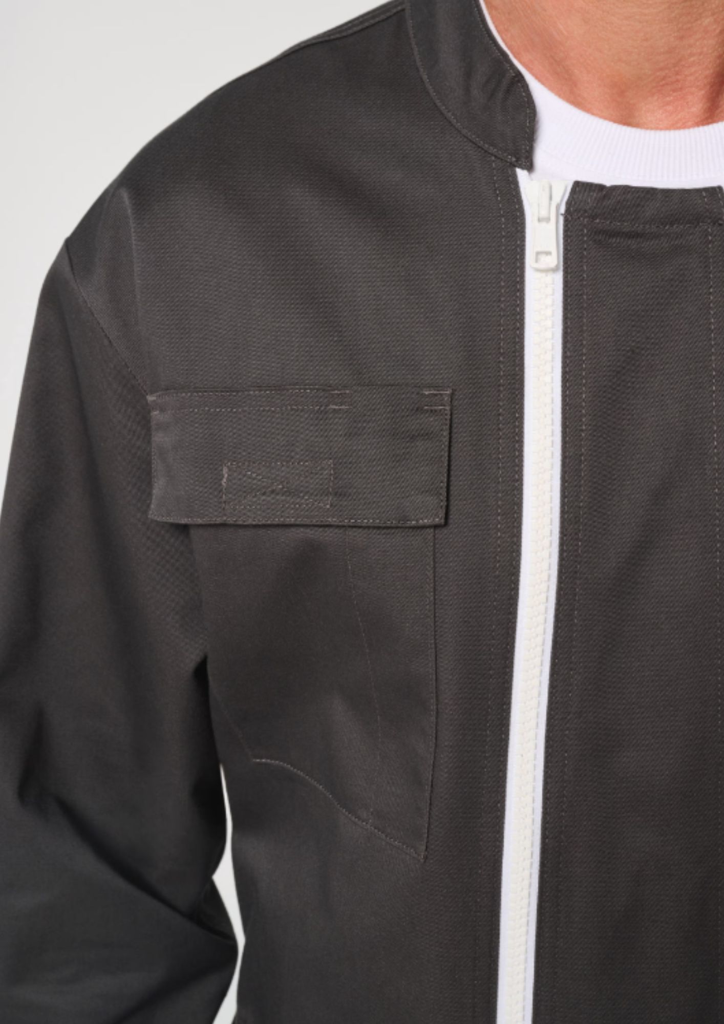 • 6 poches : Poche poitrine plaquée fermée par un rabat avec bandes auto-agrippantes. Poche poitrine plaquée zippée avec zip en plastique et tête de zip en métal blanc. Deux poches côtés avec ouverture permettant d'accéder facilement aux poches des vêtements portés en dessous. Une poche plaquée sur le côté de la cuisse droite. Une poche plaquée dos.