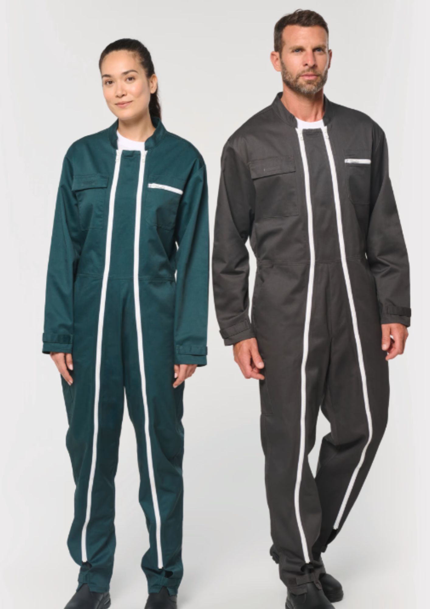 Combinaison unisexe à double zip offrant confort et liberté de mouvement grâce à son empiècement dos à plis d’aisance et sa taille élastiquée, dotée de multiples poches pratiques (poitrine, côtés, cuisse et dos), de fermetures sécurisées en zip et rabat auto-agrippant, et renforcée par des coutures doubles et triples pour une durabilité optimale, avec bas de manches et jambes ajustables pour un ajustement personnalisé.