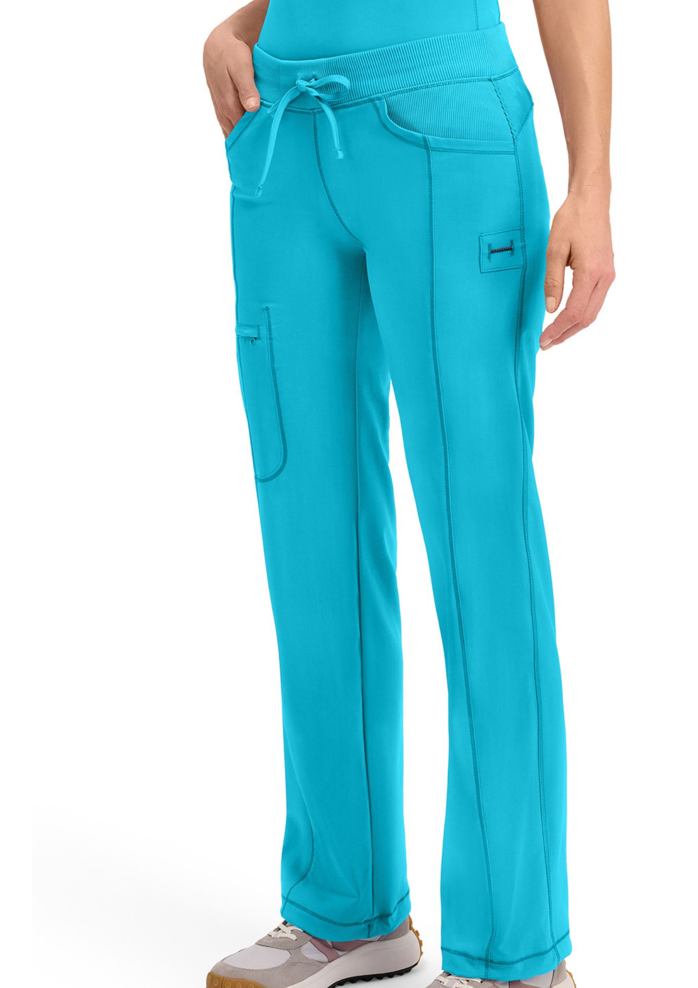 Sa taille élastique avec cordon de serrage assure un ajustement confortable et personnalisé, tandis que le cordon au bas du pantalon apporte une touche moderne et pratique, idéale pour adapter le tombé selon vos envies. Fonctionnel et bien pensé, ce pantalon médical dispose de quatre poches pratiques – deux à l’avant et deux à l’arrière – pour garder tous vos essentiels à portée de main.