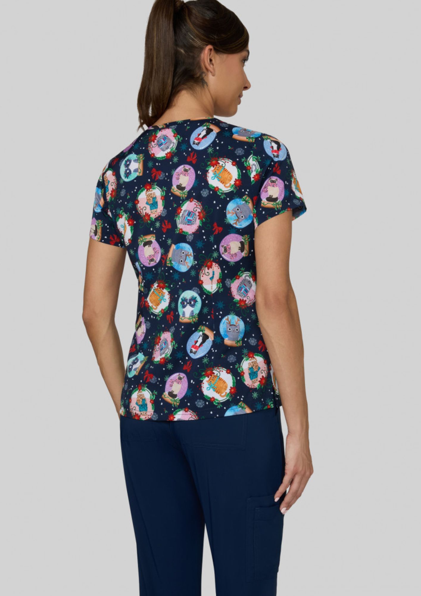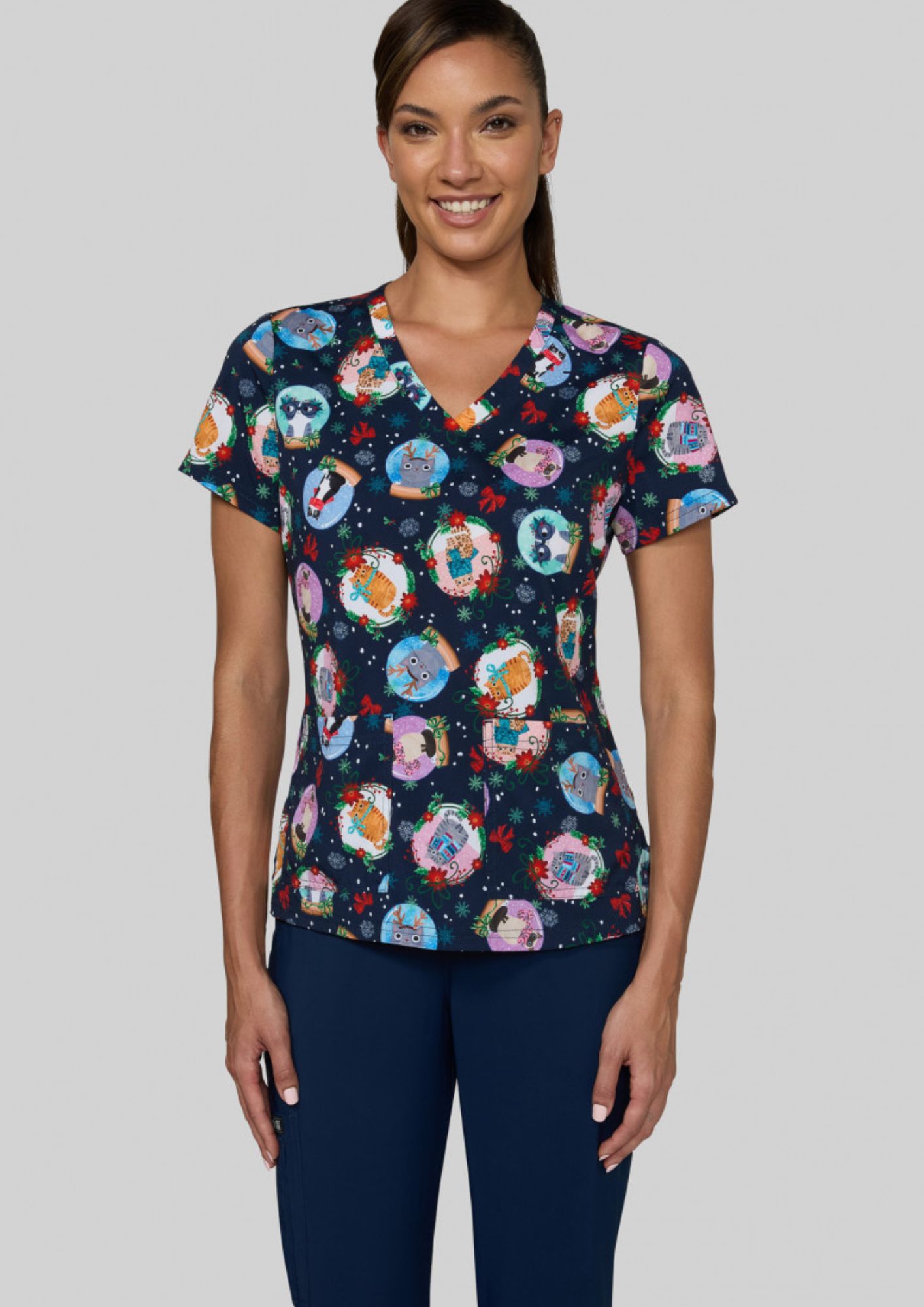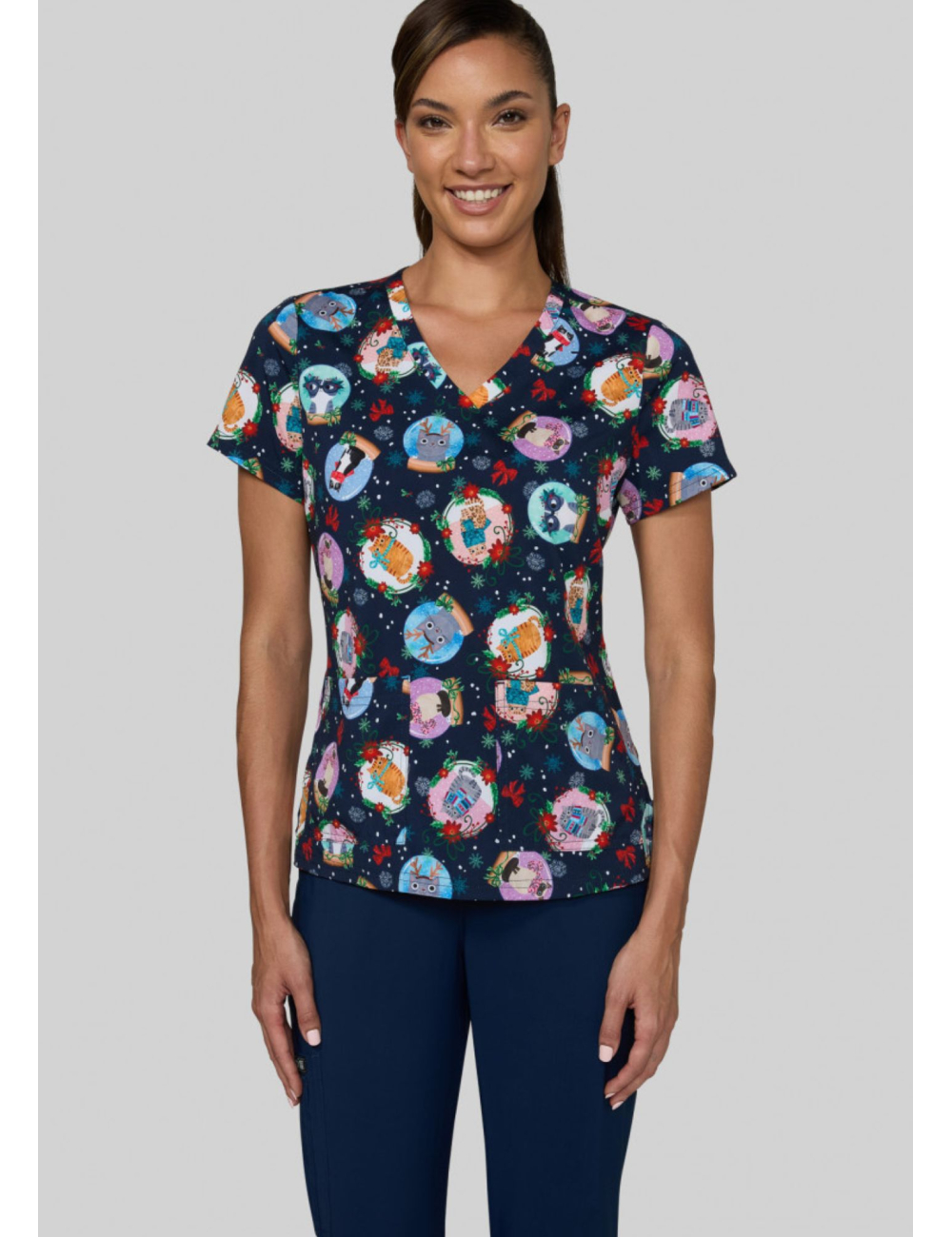 Blouse médicale originale femme "Holiday Cats" (384PRA-HAM)