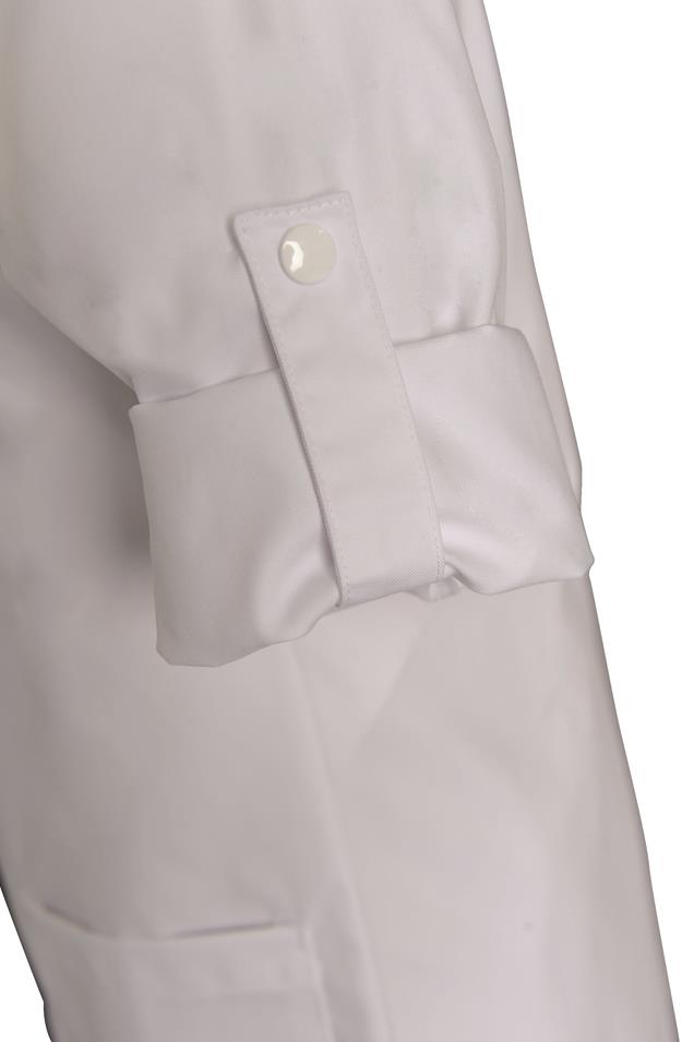. 4 poches : 2 poches plaquées sur le devant de la blouse, 1 poche intérieure, et 1 poche coté coeur