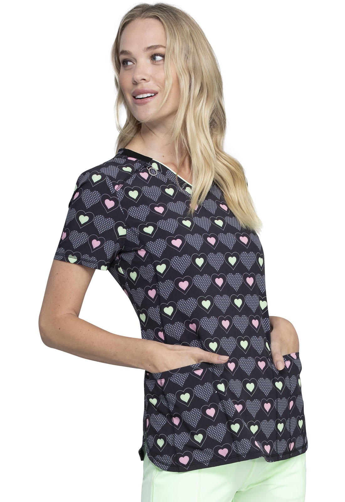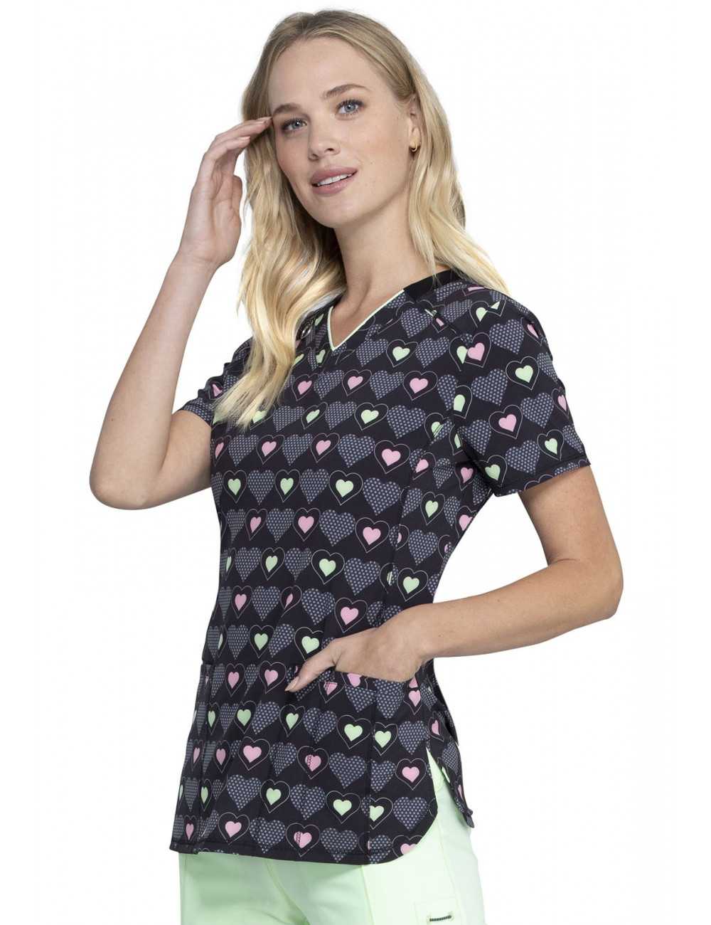 Cette blouse médicale imprimée femme convient à toutes les professions médicales : infirmière, dentiste, vétérinaire, pédiatre...