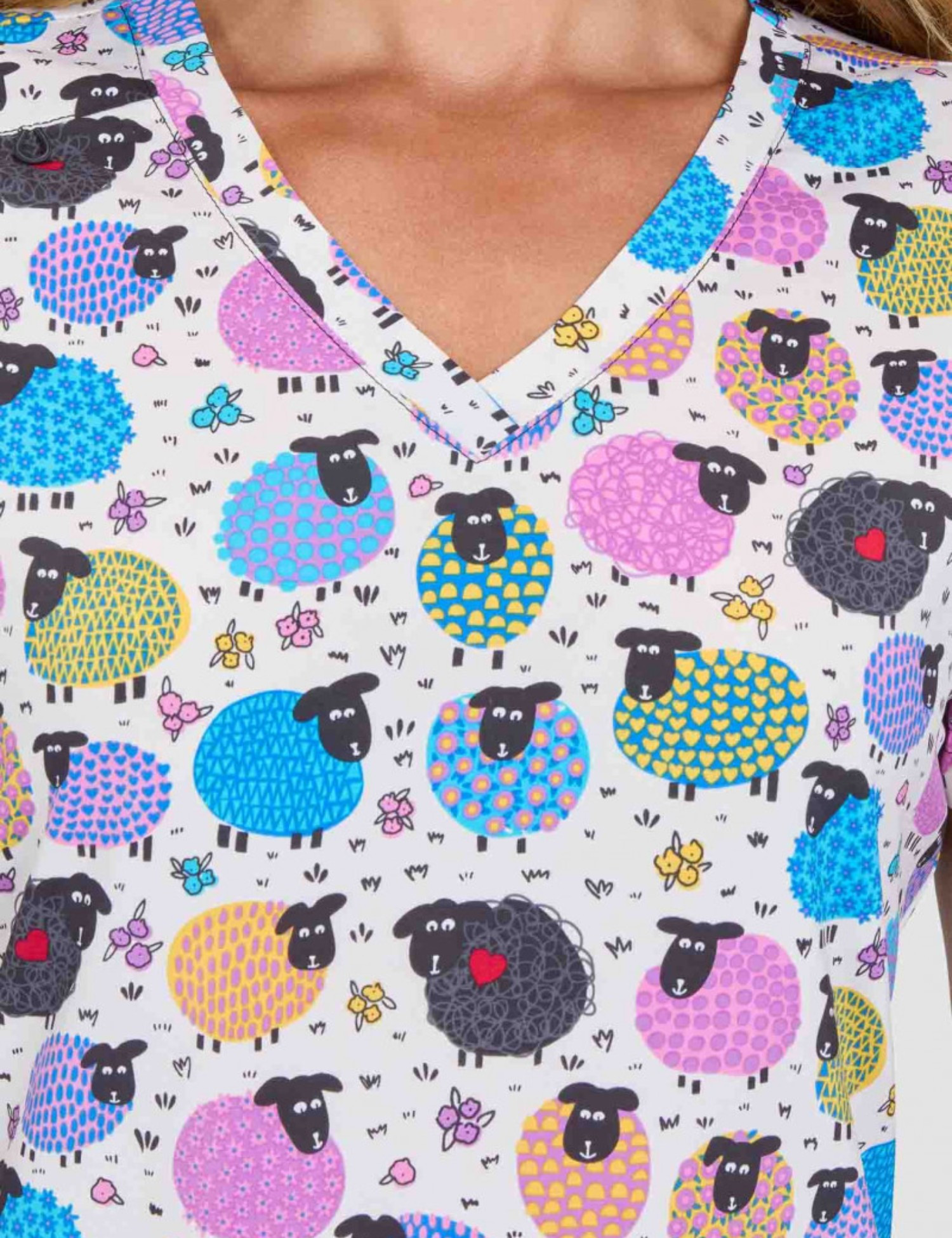 Blouse médicale femme imprimée "Moutons" (1122PRA-TBS)