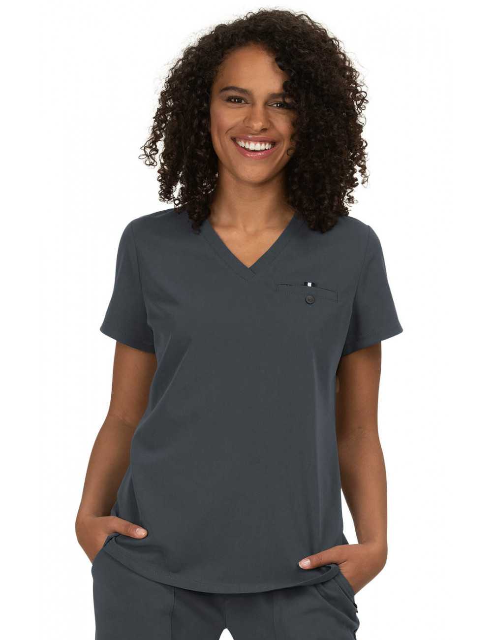 Cette blouse médicale vous garantit un look moderne et un confort incroyable. Son tissu est très extensible, ne bouge pas au lavage et évacue l'humidité.