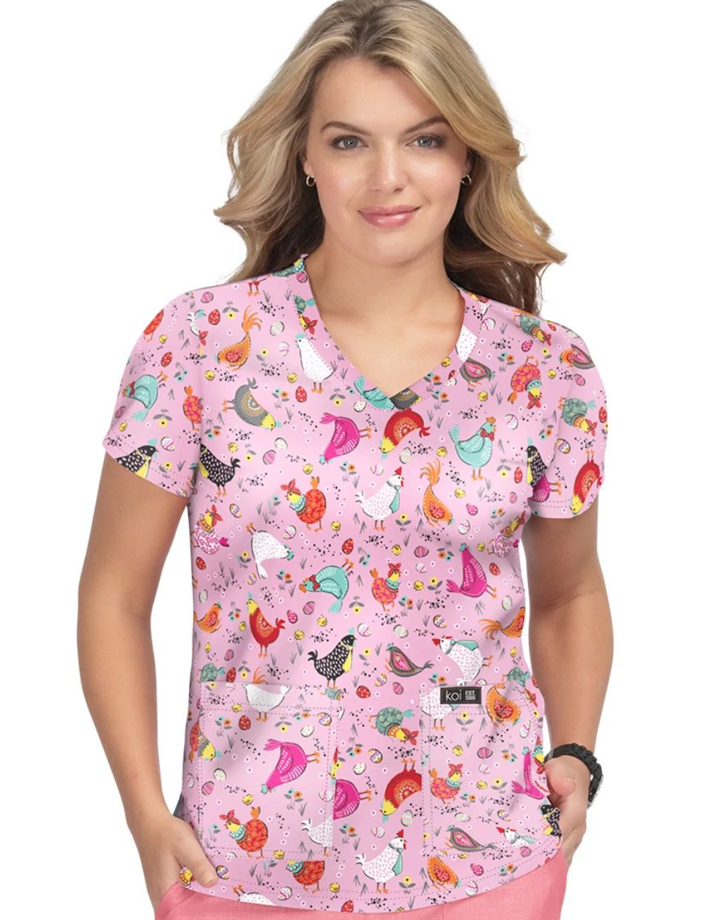 cette blouse médicale imprimée femme Koi convient à toutes les professions médicales : dentiste, infirmière, vétérinaire...