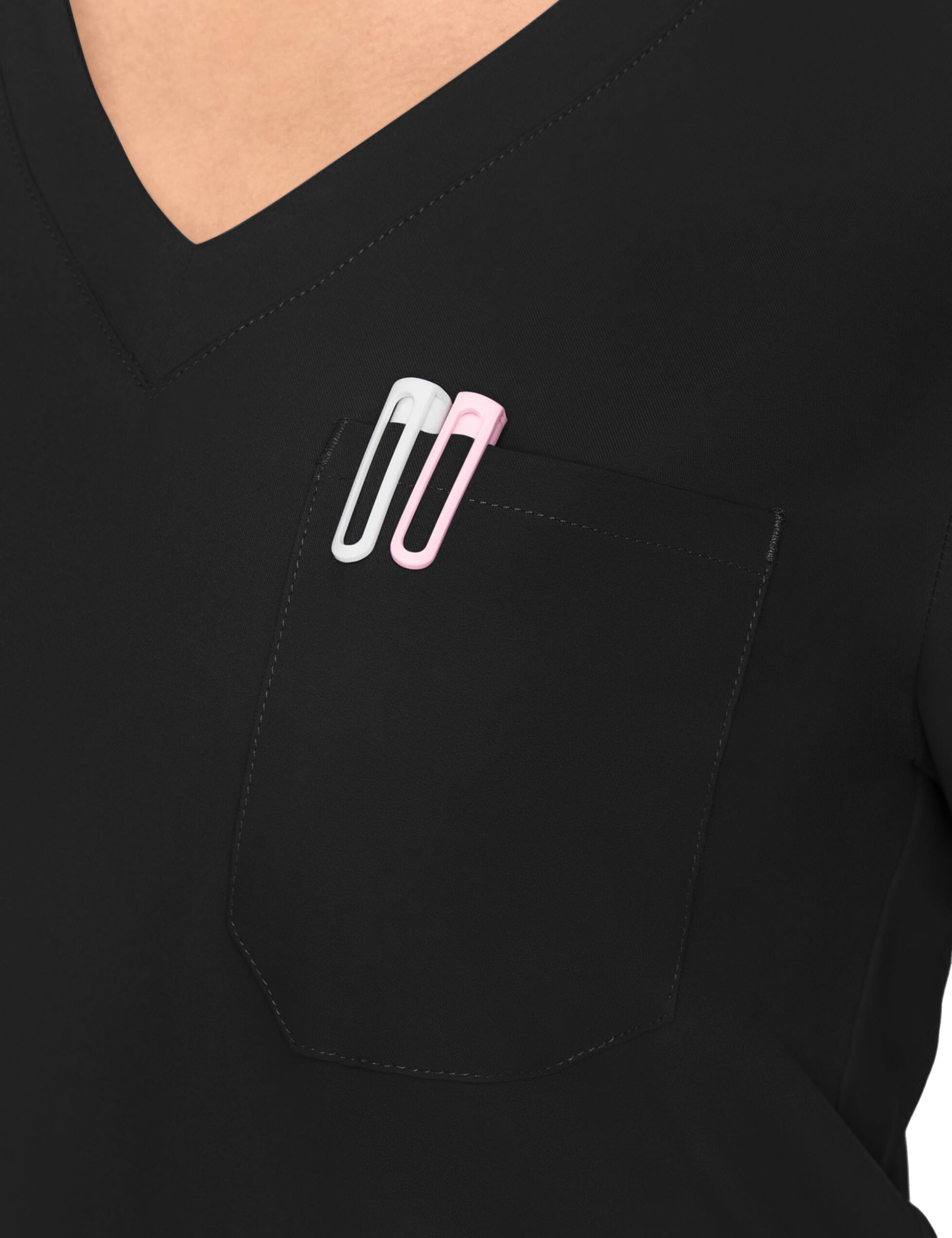 Conçue pour les professionnelles actives, cette blouse combine tissu performant et coupe moderne pour une liberté de mouvement totale, idéale pour suivre votre rythme effréné tout en restant élégante. Son col en V flatteur apporte une touche de féminité, tandis que la poche poitrine pratique et l’attache élastique pour badge gardent vos essentiels toujours à portée de main.