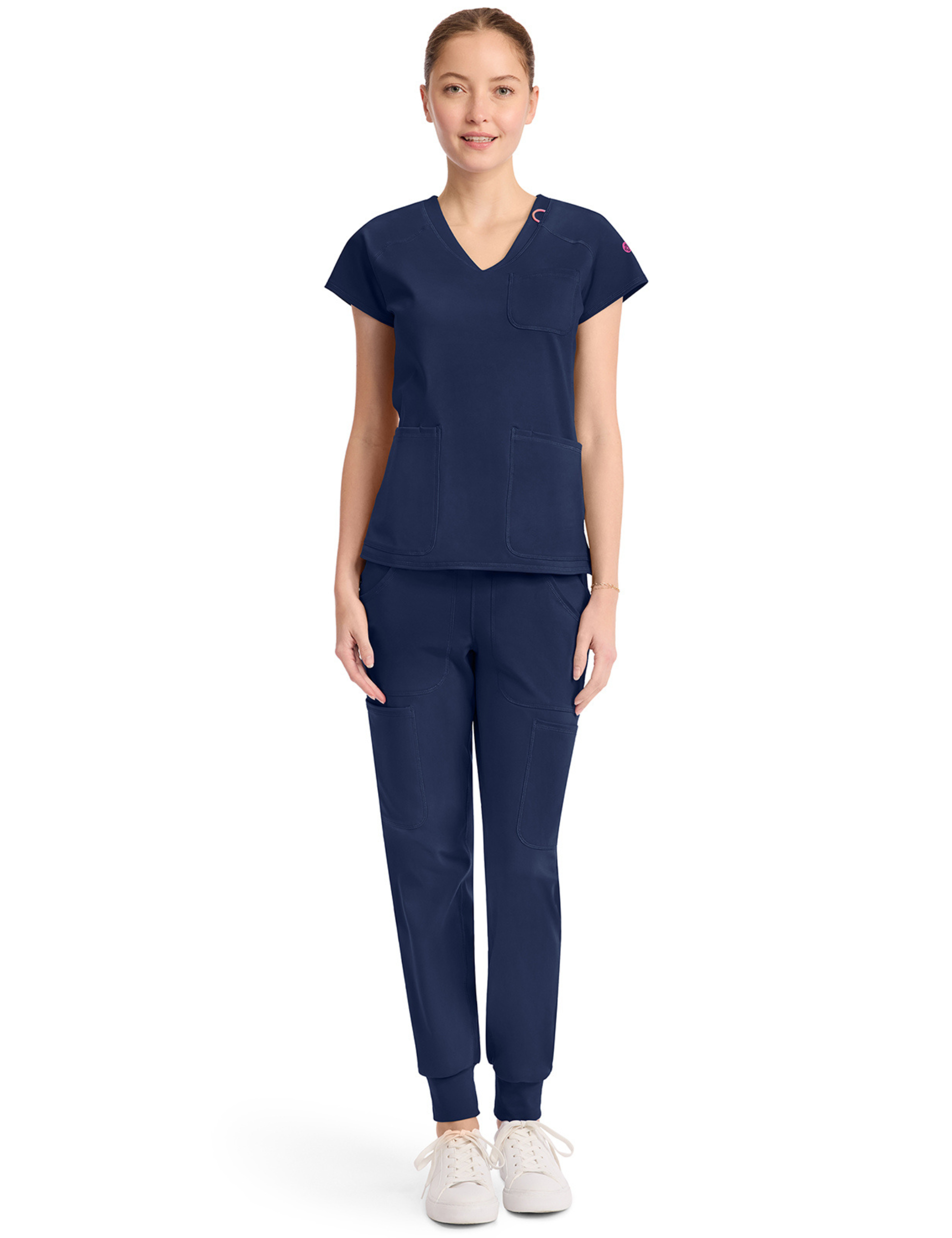 Cette blouse médicale, col v, avec sa coupe cintrée et ses multiples détails, convient à toutes les professions médicales ; les dentistes, les infirmiers, les vétérinaires, les chirurgiens, les ostéopathes...