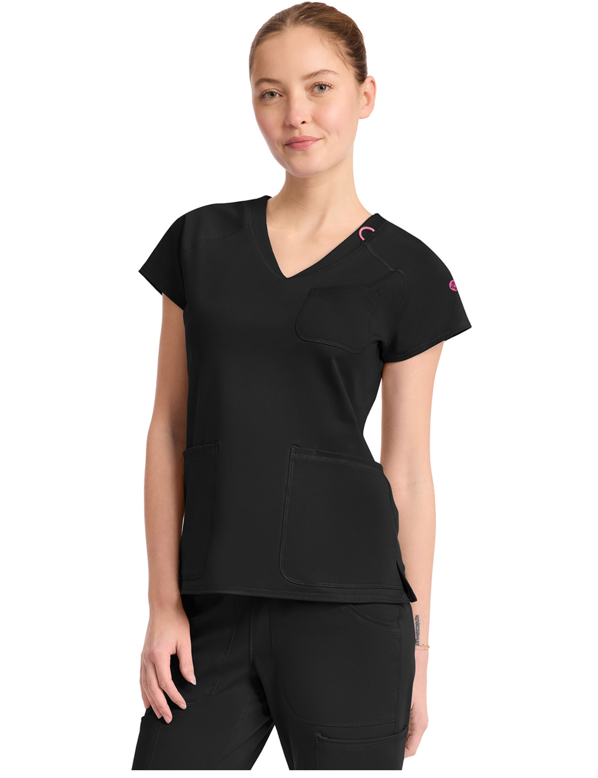 Cette blouse médicale, col v, avec sa coupe cintrée et ses multiples détails, convient à toutes les professions médicales ; les dentistes, les infirmiers, les vétérinaires, les chirurgiens, les ostéopathes...