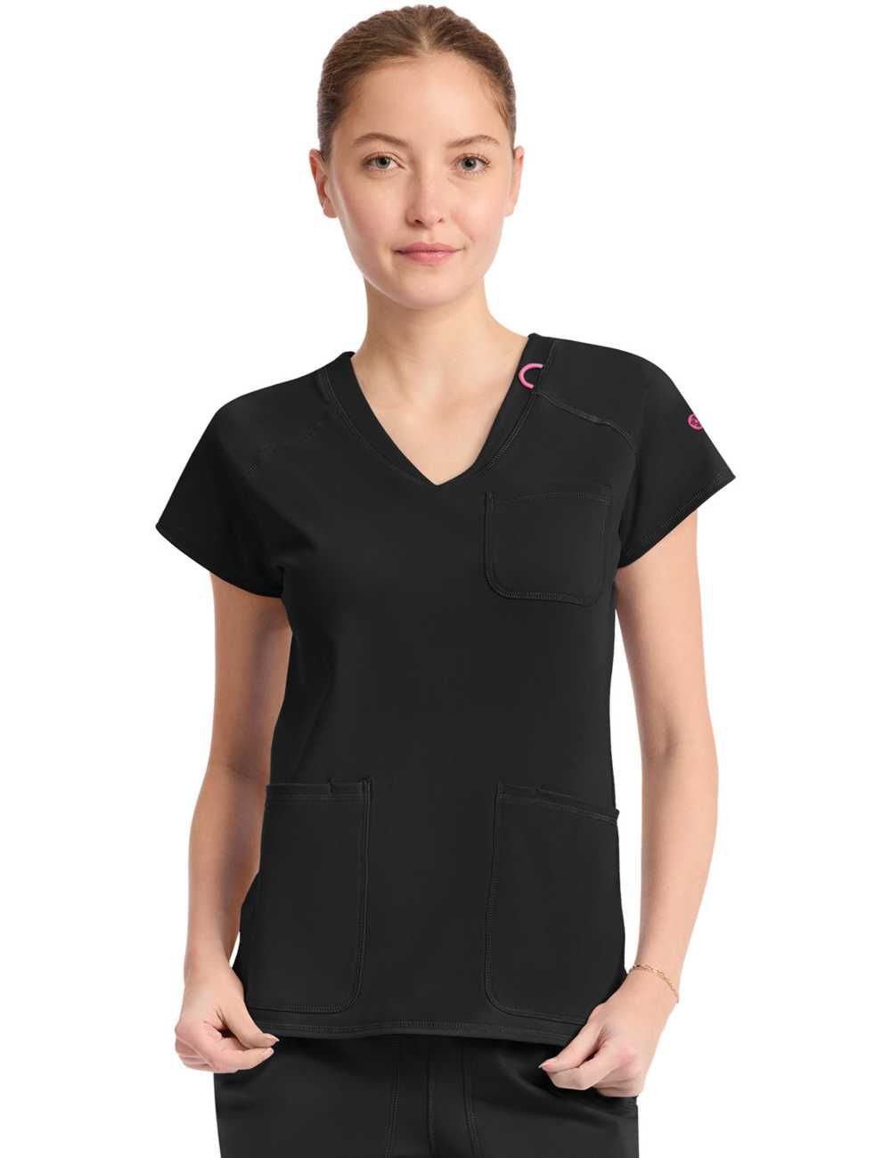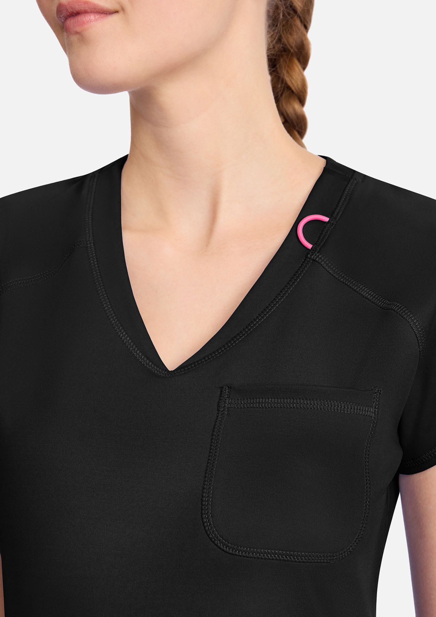 Cette blouse médicale, col v, avec sa coupe cintrée et ses multiples détails, convient à toutes les professions médicales ; les dentistes, les infirmiers, les vétérinaires, les chirurgiens, les ostéopathes...