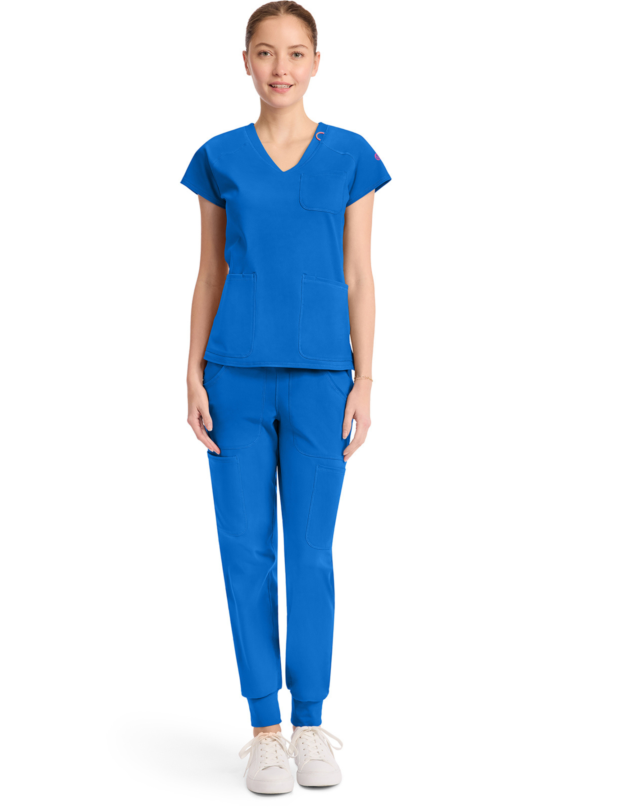 Cette blouse médicale, col v, avec sa coupe cintrée et ses multiples détails, convient à toutes les professions médicales ; les dentistes, les infirmiers, les vétérinaires, les chirurgiens, les ostéopathes...