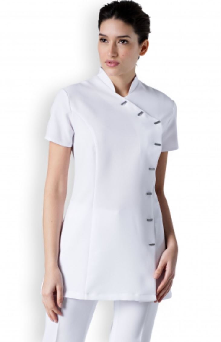 Cette blouse de travail femme, avec sa coupe cintrée et ses multiples détails, convient à toutes les professions esthétiques et médicales; Les esthéticiennes, les ostéopathes, les dentistes, les chirurgiens, les vétérinaires, les pharmaciens...