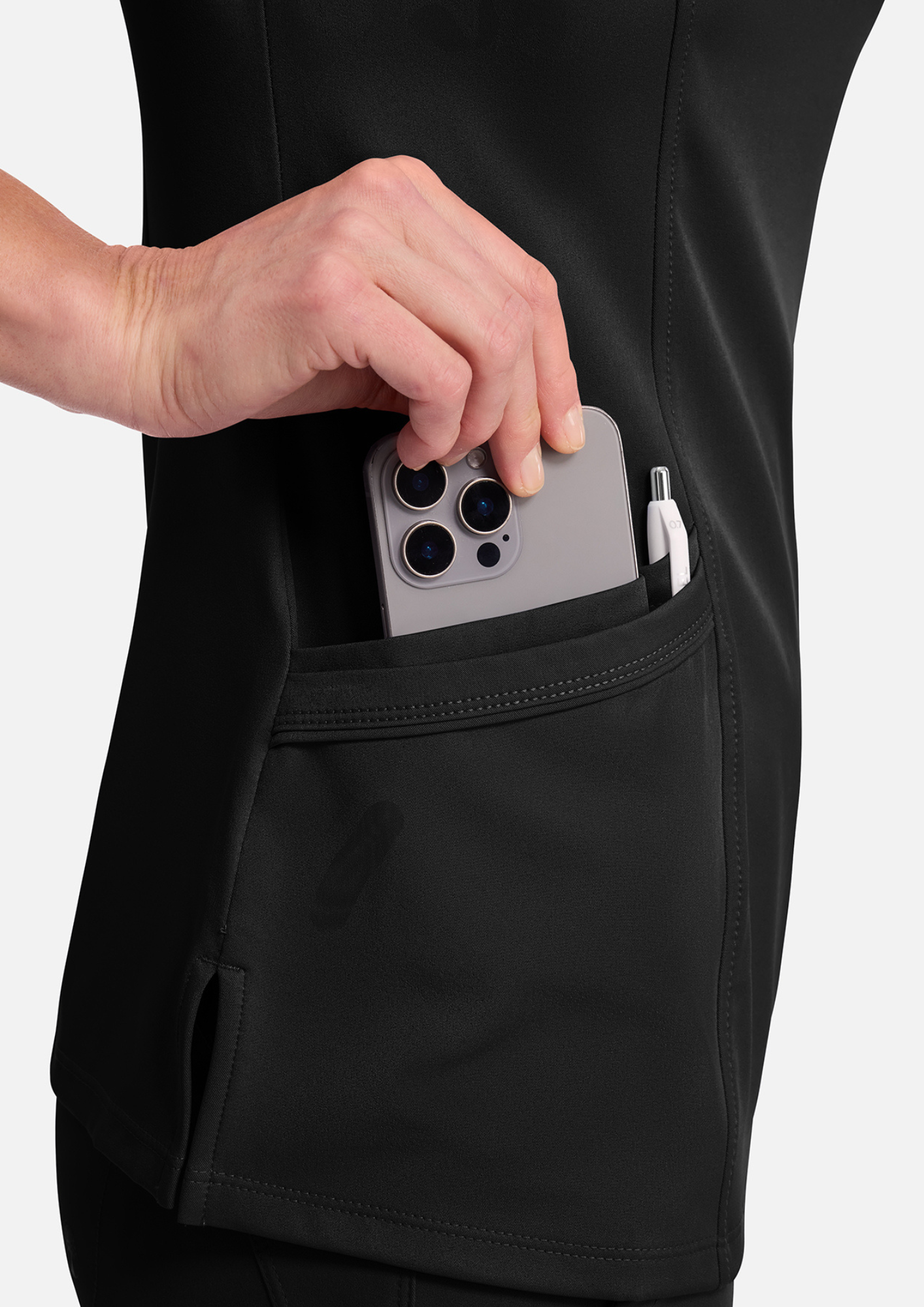 Ultra pratique, cette blouse est dotée de 4 poches fonctionnelles ainsi que d’une poche pour stylo, idéales pour garder tous vos essentiels à portée de main tout au long de la journée. Confectionnée dans un tissu léger et respirant, elle offre un confort durable, même lors des journées les plus actives. Facile à entretenir, elle vous accompagne avec style et efficacité, jour après jour.