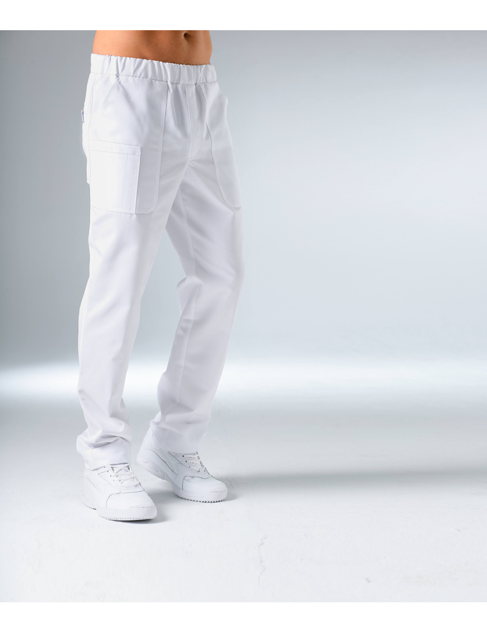 Pantalon homme avec taille élastiquée et cordelière élastiquée dans la ceinture. 2 poches cotés. 1 double poche avec pochette stylo à droite, 2 poches dos. Longueur: 86 cm 65% polyester-35% coton Lavage à 95° (adapté au lavage industriel) |