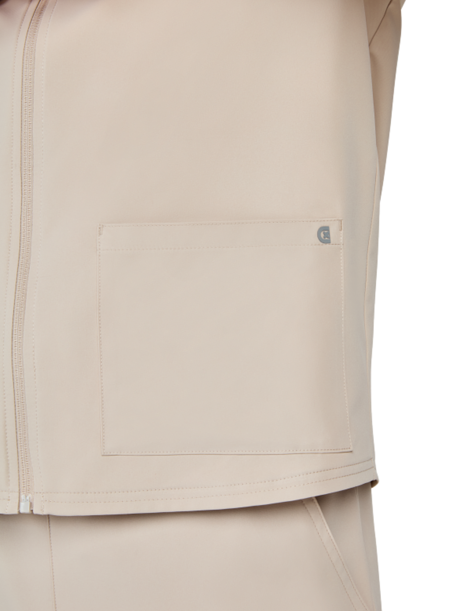 Cette veste médicale avec son col montant, sa coupe droite et ses multiples détails s'adapte parfaitement à toutes les professions médicales : dentiste, infirmier, kiné, vétérinaire...