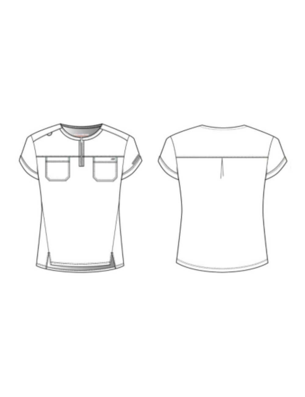 Son design pratique et moderne fait toute la différence : double poche poitrine, 2 poches au total, encolure arrondie zippée, coupe classique à taille décontractée, et un ourlet asymétrique pour une allure dynamique et flatteuse.